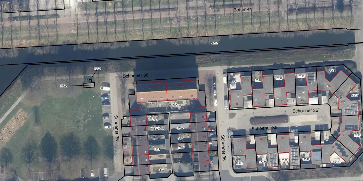 Het perceel waarop Schoener 36 16 staat heeft een oppervlakte van 896 m². Dit is een groot perceel. De perceeloppervlakte wordt geregistreerd door het Kadaster. Gedetailleerde informatie over de maten van dit perceel kunt u vinden in het rapport Kadastrale kaart met maatvoering van Schoener 36 16.