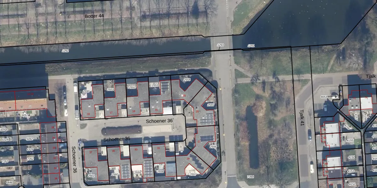 Schoener 36 23 is gelegen op kadastraal perceel LLS00O2554. Deze kadastrale aanduiding is uniek en wordt gebruikt door het Kadaster om eigendomsrechten en andere zakelijke rechten vast te leggen. Het perceel maakt onderdeel uit van de kadastrale gemeente Lelystad.