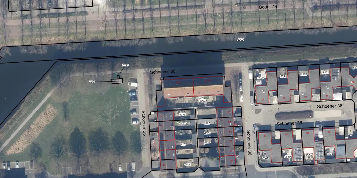Schoener 36 4 is gelegen op kadastraal perceel LLS00O6057. Deze kadastrale aanduiding is uniek en wordt gebruikt door het Kadaster om eigendomsrechten en andere zakelijke rechten vast te leggen. Het perceel maakt onderdeel uit van de kadastrale gemeente Lelystad.