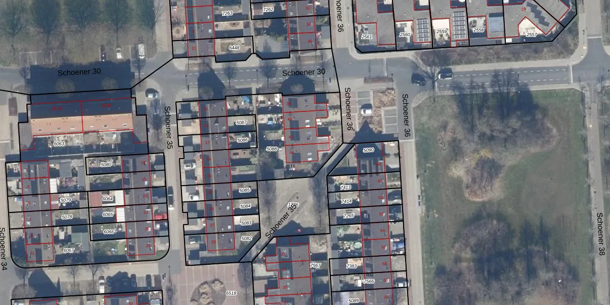 Het perceel waarop Schoener 36 44 staat heeft een oppervlakte van 1150 m². Dit is een zeer groot perceel. De perceeloppervlakte wordt geregistreerd door het Kadaster. Gedetailleerde informatie over de maten van dit perceel kunt u vinden in het rapport Kadastrale kaart met maatvoering van Schoener 36 44.
