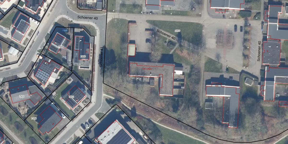 Schoener 40 10-E-12 is gelegen op kadastraal perceel LLS00O1973. Deze kadastrale aanduiding is uniek en wordt gebruikt door het Kadaster om eigendomsrechten en andere zakelijke rechten vast te leggen. Het perceel maakt onderdeel uit van de kadastrale gemeente Lelystad.