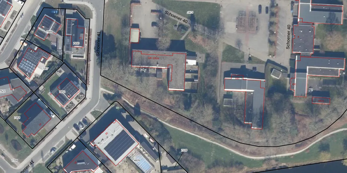 Het perceel waarop Schoener 40 10-E-7 staat heeft een oppervlakte van 1,9 ha. Dit is een zeer groot perceel. De perceeloppervlakte wordt geregistreerd door het Kadaster. Gedetailleerde informatie over de maten van dit perceel kunt u vinden in het rapport Kadastrale kaart met maatvoering van Schoener 40 10-E-7.