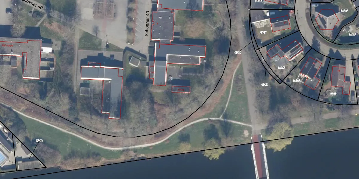 Het perceel waarop Schoener 40 10-C-1 staat heeft een oppervlakte van 1,9 ha. Dit is een zeer groot perceel. De perceeloppervlakte wordt geregistreerd door het Kadaster. Gedetailleerde informatie over de maten van dit perceel kunt u vinden in het rapport Kadastrale kaart met maatvoering van Schoener 40 10-C-1.