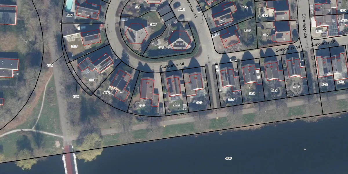 Het perceel waarop Schoener 44 28 staat heeft een oppervlakte van 325 m². Dit is een groot perceel. De perceeloppervlakte wordt geregistreerd door het Kadaster. Gedetailleerde informatie over de maten van dit perceel kunt u vinden in het rapport Kadastrale kaart met maatvoering van Schoener 44 28.