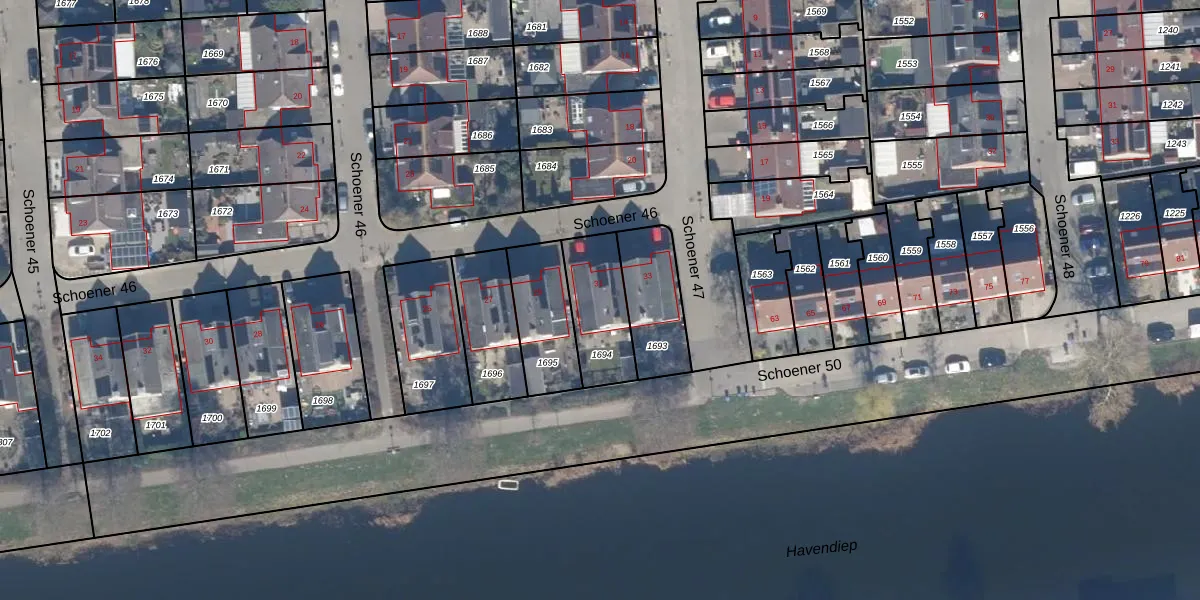Schoener 46 31 is gelegen op kadastraal perceel LLS00O1694. Deze kadastrale aanduiding is uniek en wordt gebruikt door het Kadaster om eigendomsrechten en andere zakelijke rechten vast te leggen. Het perceel maakt onderdeel uit van de kadastrale gemeente Lelystad.