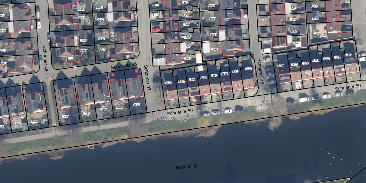 Schoener 50 65 is gelegen op kadastraal perceel LLS00O1562. Deze kadastrale aanduiding is uniek en wordt gebruikt door het Kadaster om eigendomsrechten en andere zakelijke rechten vast te leggen. Het perceel maakt onderdeel uit van de kadastrale gemeente Lelystad.