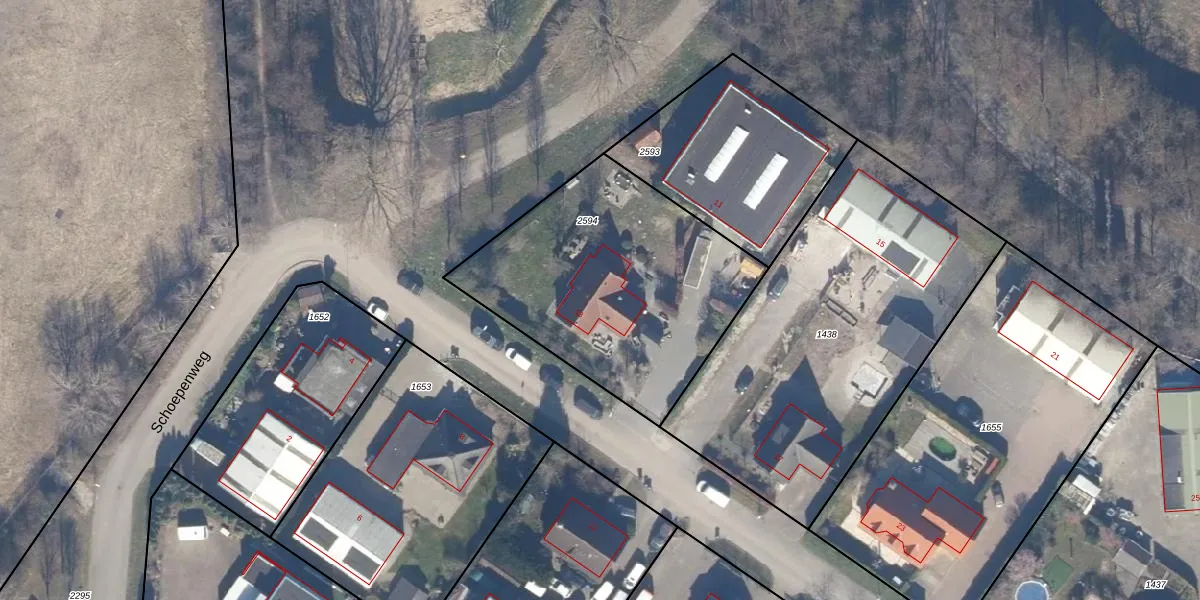 Het perceel waarop Schoepenweg 13 staat heeft een oppervlakte van 1245 m². Dit is een zeer groot perceel. De perceeloppervlakte wordt geregistreerd door het Kadaster. Gedetailleerde informatie over de maten van dit perceel kunt u vinden in het rapport Kadastrale kaart met maatvoering van Schoepenweg 13.