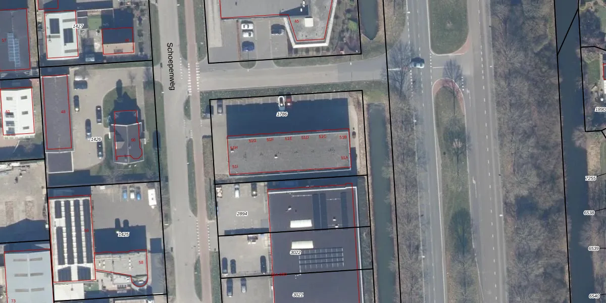 Het perceel waarop Schoepenweg 51-D staat heeft een oppervlakte van 1411 m². Dit is een zeer groot perceel. De perceeloppervlakte wordt geregistreerd door het Kadaster. Gedetailleerde informatie over de maten van dit perceel kunt u vinden in het rapport Kadastrale kaart met maatvoering van Schoepenweg 51-D.