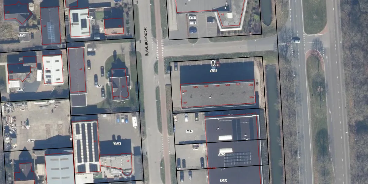 Het perceel waarop Schoepenweg 51-H staat heeft een oppervlakte van 1411 m². Dit is een zeer groot perceel. De perceeloppervlakte wordt geregistreerd door het Kadaster. Gedetailleerde informatie over de maten van dit perceel kunt u vinden in het rapport Kadastrale kaart met maatvoering van Schoepenweg 51-H.