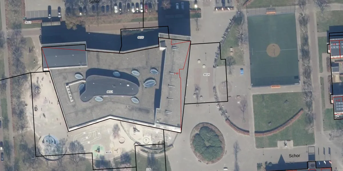 Het perceel waarop Schor 25 staat heeft een oppervlakte van 3555 m². Dit is een zeer groot perceel. De perceeloppervlakte wordt geregistreerd door het Kadaster. Gedetailleerde informatie over de maten van dit perceel kunt u vinden in het rapport Kadastrale kaart met maatvoering van Schor 25.