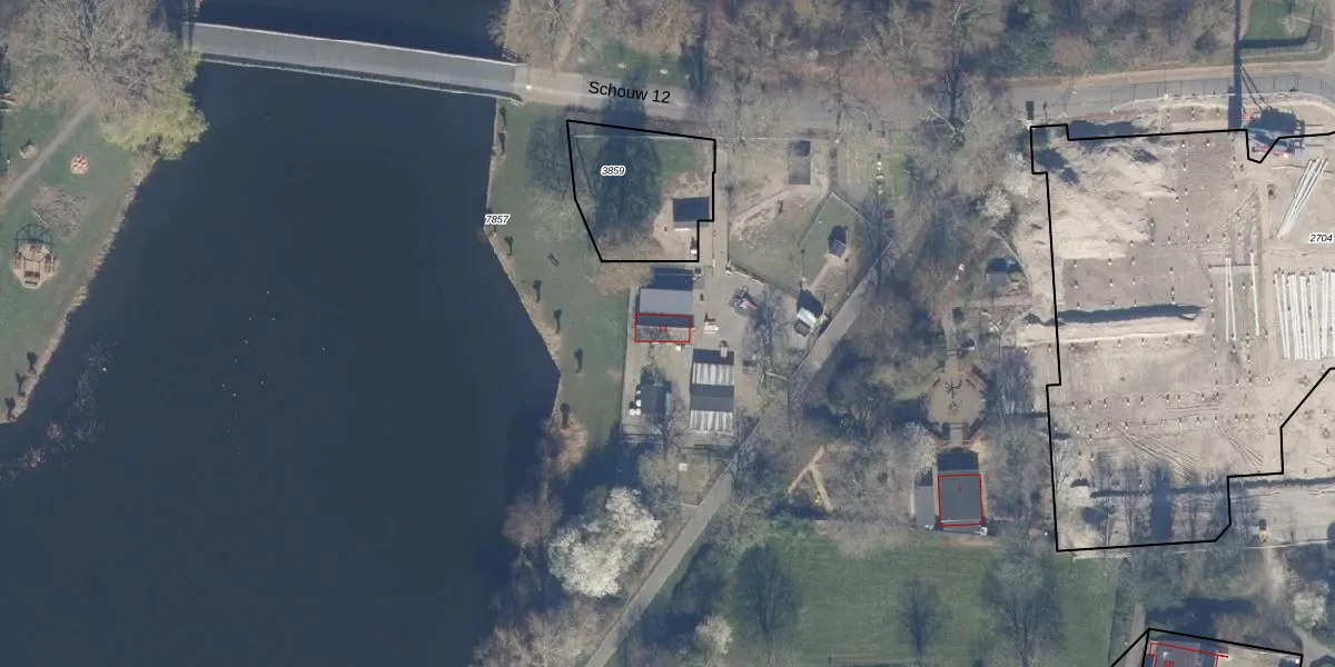 Het perceel waarop Schouw 12 13 staat heeft een oppervlakte van 5,9 ha. Dit is een zeer groot perceel. De perceeloppervlakte wordt geregistreerd door het Kadaster. Gedetailleerde informatie over de maten van dit perceel kunt u vinden in het rapport Kadastrale kaart met maatvoering van Schouw 12 13.