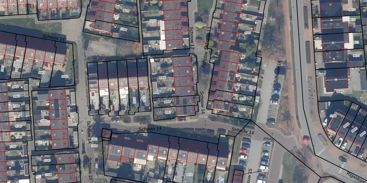 Het perceel waarop Schouw 14 11 staat heeft een oppervlakte van 546 m². Dit is een groot perceel. De perceeloppervlakte wordt geregistreerd door het Kadaster. Gedetailleerde informatie over de maten van dit perceel kunt u vinden in het rapport Kadastrale kaart met maatvoering van Schouw 14 11.