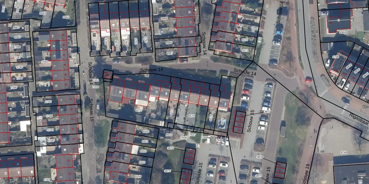 Het perceel waarop Schouw 14 21 staat heeft een oppervlakte van 401 m². Dit is een groot perceel. De perceeloppervlakte wordt geregistreerd door het Kadaster. Gedetailleerde informatie over de maten van dit perceel kunt u vinden in het rapport Kadastrale kaart met maatvoering van Schouw 14 21.