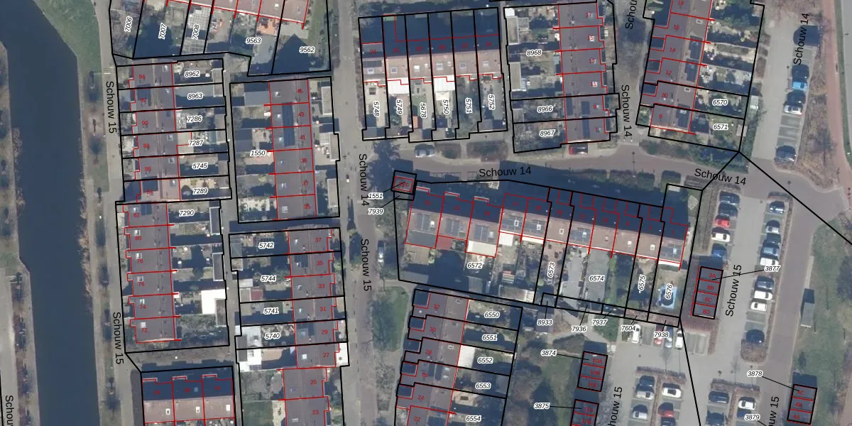 Het perceel waarop Schouw 14 33 staat heeft een oppervlakte van 872 m². Dit is een groot perceel. De perceeloppervlakte wordt geregistreerd door het Kadaster. Gedetailleerde informatie over de maten van dit perceel kunt u vinden in het rapport Kadastrale kaart met maatvoering van Schouw 14 33.