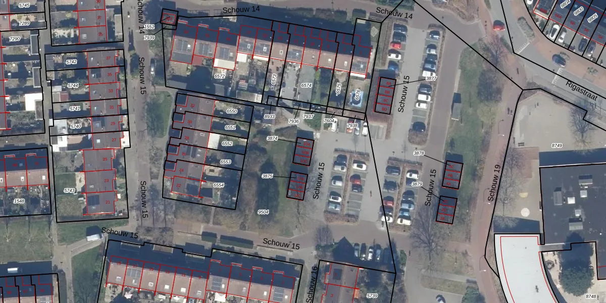 Het perceel waarop Schouw 15 10-B staat heeft een oppervlakte van 47 m². Dit is een klein perceel. De perceeloppervlakte wordt geregistreerd door het Kadaster. Gedetailleerde informatie over de maten van dit perceel kunt u vinden in het rapport Kadastrale kaart met maatvoering van Schouw 15 10-B.