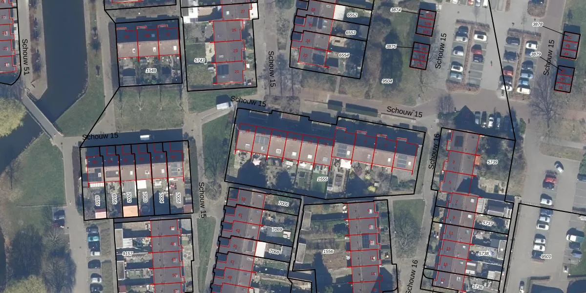 Het perceel waarop Schouw 15 13 staat heeft een oppervlakte van 1658 m². Dit is een zeer groot perceel. De perceeloppervlakte wordt geregistreerd door het Kadaster. Gedetailleerde informatie over de maten van dit perceel kunt u vinden in het rapport Kadastrale kaart met maatvoering van Schouw 15 13.