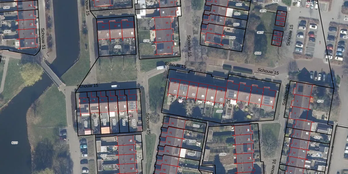 Het perceel waarop Schouw 15 19 staat heeft een oppervlakte van 1658 m². Dit is een zeer groot perceel. De perceeloppervlakte wordt geregistreerd door het Kadaster. Gedetailleerde informatie over de maten van dit perceel kunt u vinden in het rapport Kadastrale kaart met maatvoering van Schouw 15 19.