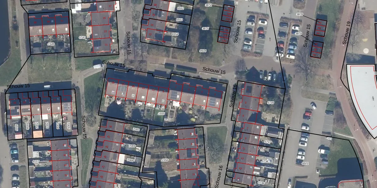 Het perceel waarop Schouw 15 5 staat heeft een oppervlakte van 1658 m². Dit is een zeer groot perceel. De perceeloppervlakte wordt geregistreerd door het Kadaster. Gedetailleerde informatie over de maten van dit perceel kunt u vinden in het rapport Kadastrale kaart met maatvoering van Schouw 15 5.