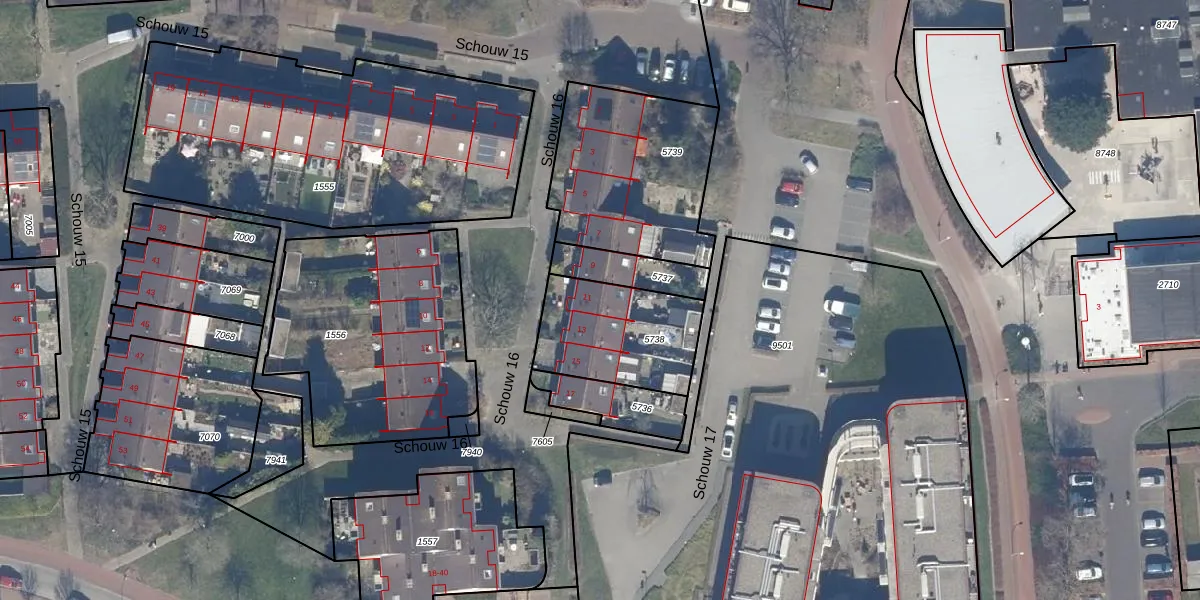 Het perceel waarop Schouw 16 11 staat heeft een oppervlakte van 426 m². Dit is een groot perceel. De perceeloppervlakte wordt geregistreerd door het Kadaster. Gedetailleerde informatie over de maten van dit perceel kunt u vinden in het rapport Kadastrale kaart met maatvoering van Schouw 16 11.