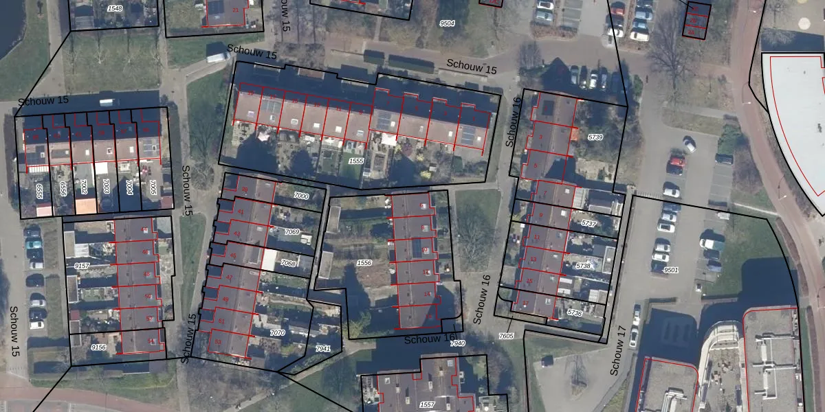 Schouw 16 6 is gelegen op kadastraal perceel LLS00M1556. Deze kadastrale aanduiding is uniek en wordt gebruikt door het Kadaster om eigendomsrechten en andere zakelijke rechten vast te leggen. Het perceel maakt onderdeel uit van de kadastrale gemeente Lelystad.