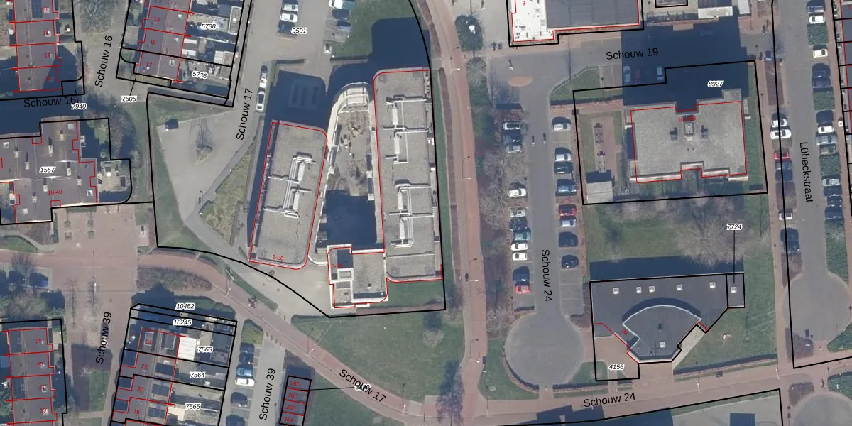 Het perceel waarop Schouw 17 34 staat heeft een oppervlakte van 4216 m². Dit is een zeer groot perceel. De perceeloppervlakte wordt geregistreerd door het Kadaster. Gedetailleerde informatie over de maten van dit perceel kunt u vinden in het rapport Kadastrale kaart met maatvoering van Schouw 17 34.