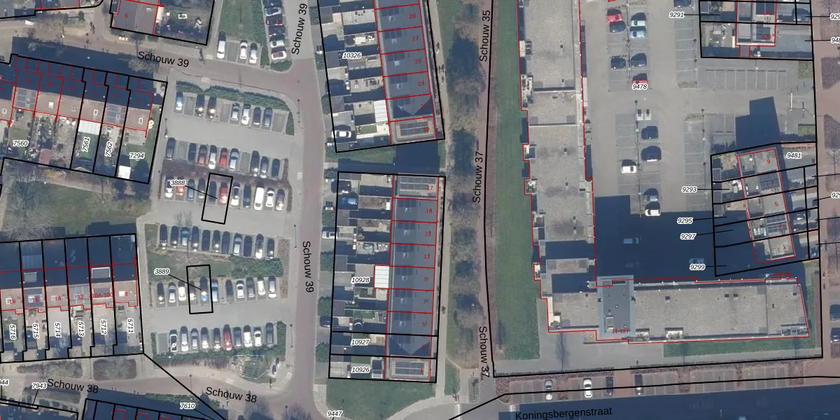 Het perceel waarop Schouw 37 15 staat heeft een oppervlakte van 969 m². Dit is een groot perceel. De perceeloppervlakte wordt geregistreerd door het Kadaster. Gedetailleerde informatie over de maten van dit perceel kunt u vinden in het rapport Kadastrale kaart met maatvoering van Schouw 37 15.