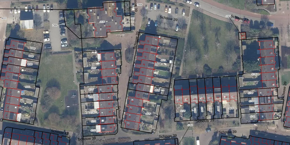 Het perceel waarop Schouw 39 66 staat heeft een oppervlakte van 947 m². Dit is een groot perceel. De perceeloppervlakte wordt geregistreerd door het Kadaster. Gedetailleerde informatie over de maten van dit perceel kunt u vinden in het rapport Kadastrale kaart met maatvoering van Schouw 39 66.