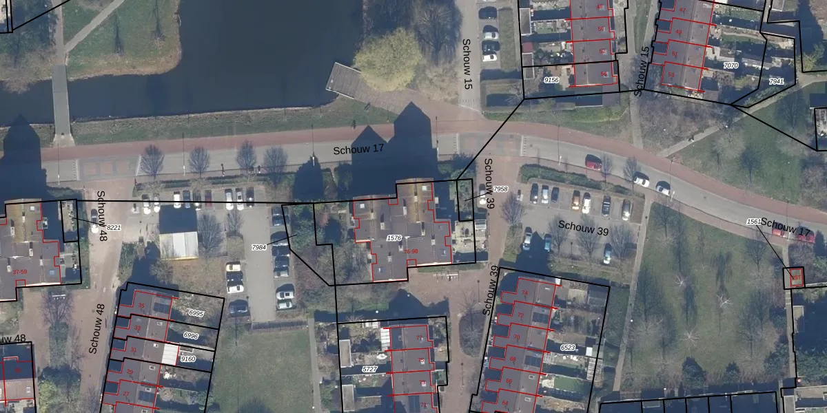 Het perceel waarop Schouw 39 92 staat heeft een oppervlakte van 702 m². Dit is een groot perceel. De perceeloppervlakte wordt geregistreerd door het Kadaster. Gedetailleerde informatie over de maten van dit perceel kunt u vinden in het rapport Kadastrale kaart met maatvoering van Schouw 39 92.