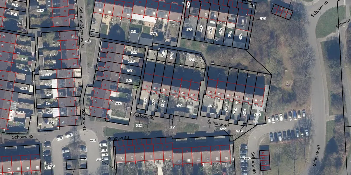 Het perceel waarop Schouw 40 18 staat heeft een oppervlakte van 510 m². Dit is een groot perceel. De perceeloppervlakte wordt geregistreerd door het Kadaster. Gedetailleerde informatie over de maten van dit perceel kunt u vinden in het rapport Kadastrale kaart met maatvoering van Schouw 40 18.