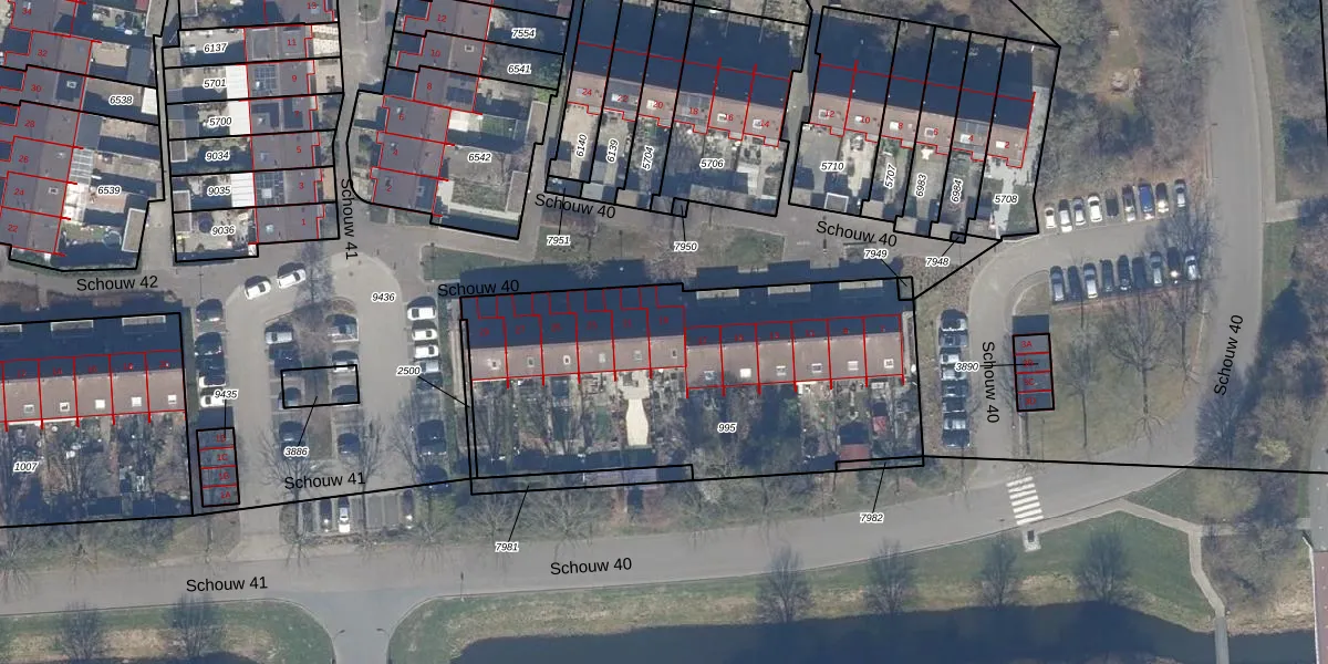 Het perceel waarop Schouw 40 19 staat heeft een oppervlakte van 1862 m². Dit is een zeer groot perceel. De perceeloppervlakte wordt geregistreerd door het Kadaster. Gedetailleerde informatie over de maten van dit perceel kunt u vinden in het rapport Kadastrale kaart met maatvoering van Schouw 40 19.