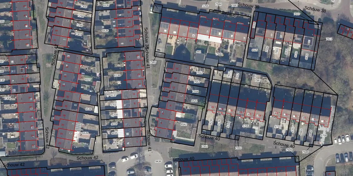 Gebruik de zoekbalk of klik op een perceel voor informatie over de adressen binnen dit perceel.