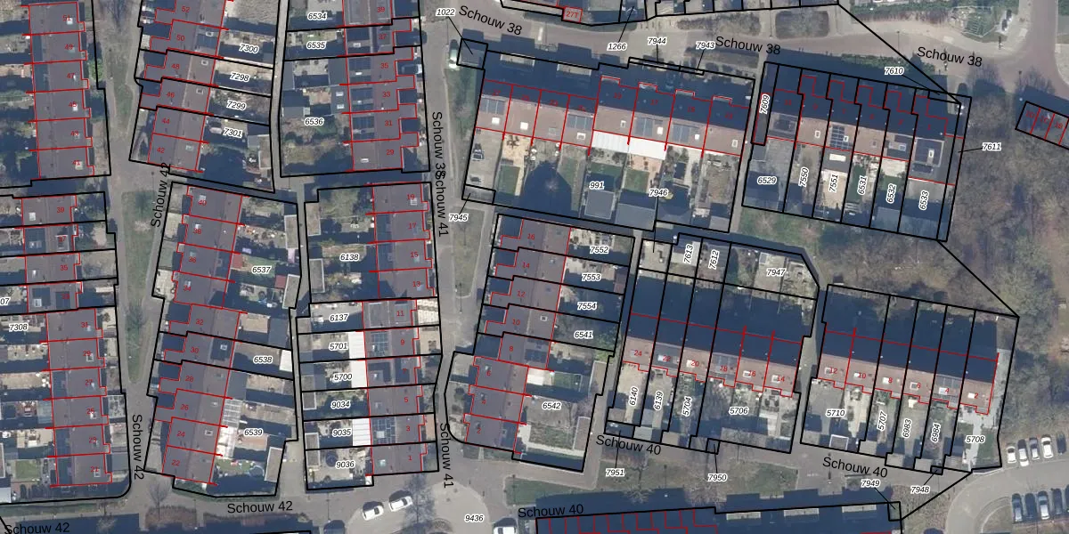 Gebruik de zoekbalk of klik op een perceel voor informatie over de adressen binnen dit perceel.