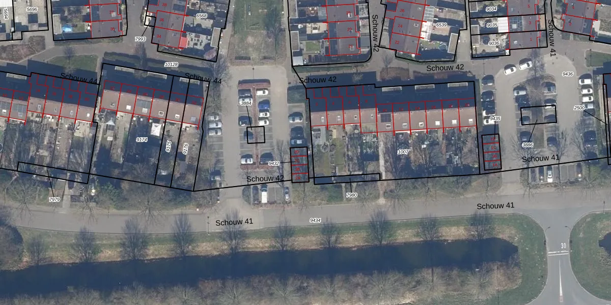 Het perceel waarop Schouw 42 2-D staat heeft een oppervlakte van 64 m². Dit is een klein perceel. De perceeloppervlakte wordt geregistreerd door het Kadaster. Gedetailleerde informatie over de maten van dit perceel kunt u vinden in het rapport Kadastrale kaart met maatvoering van Schouw 42 2-D.