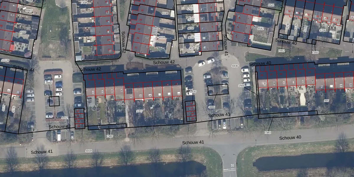Schouw 42 20 is gelegen op kadastraal perceel LLS00M1007. Deze kadastrale aanduiding is uniek en wordt gebruikt door het Kadaster om eigendomsrechten en andere zakelijke rechten vast te leggen. Het perceel maakt onderdeel uit van de kadastrale gemeente Lelystad.
