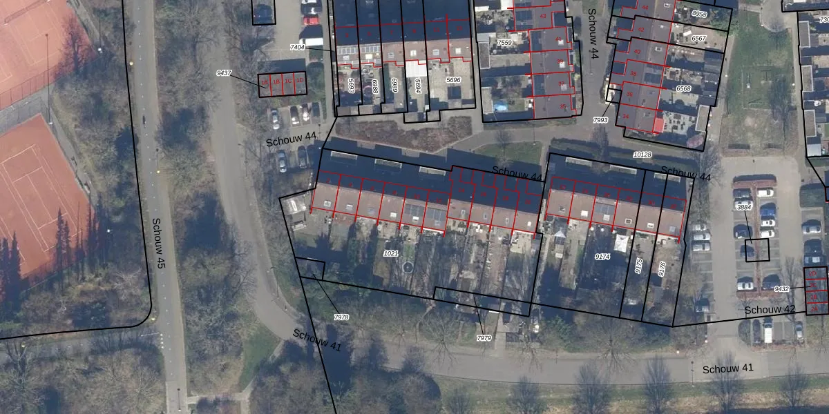 Het perceel waarop Schouw 44 10 staat heeft een oppervlakte van 1754 m². Dit is een zeer groot perceel. De perceeloppervlakte wordt geregistreerd door het Kadaster. Gedetailleerde informatie over de maten van dit perceel kunt u vinden in het rapport Kadastrale kaart met maatvoering van Schouw 44 10.