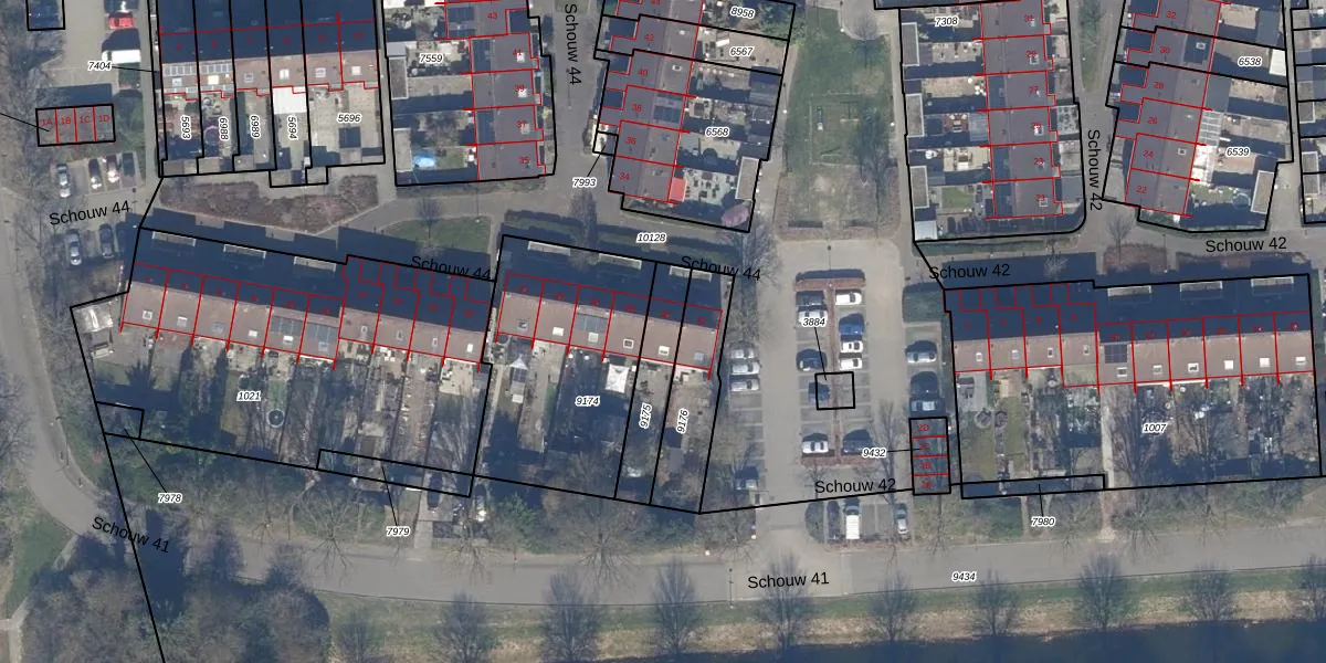 Gebruik de zoekbalk of klik op een perceel voor informatie over de adressen binnen dit perceel.