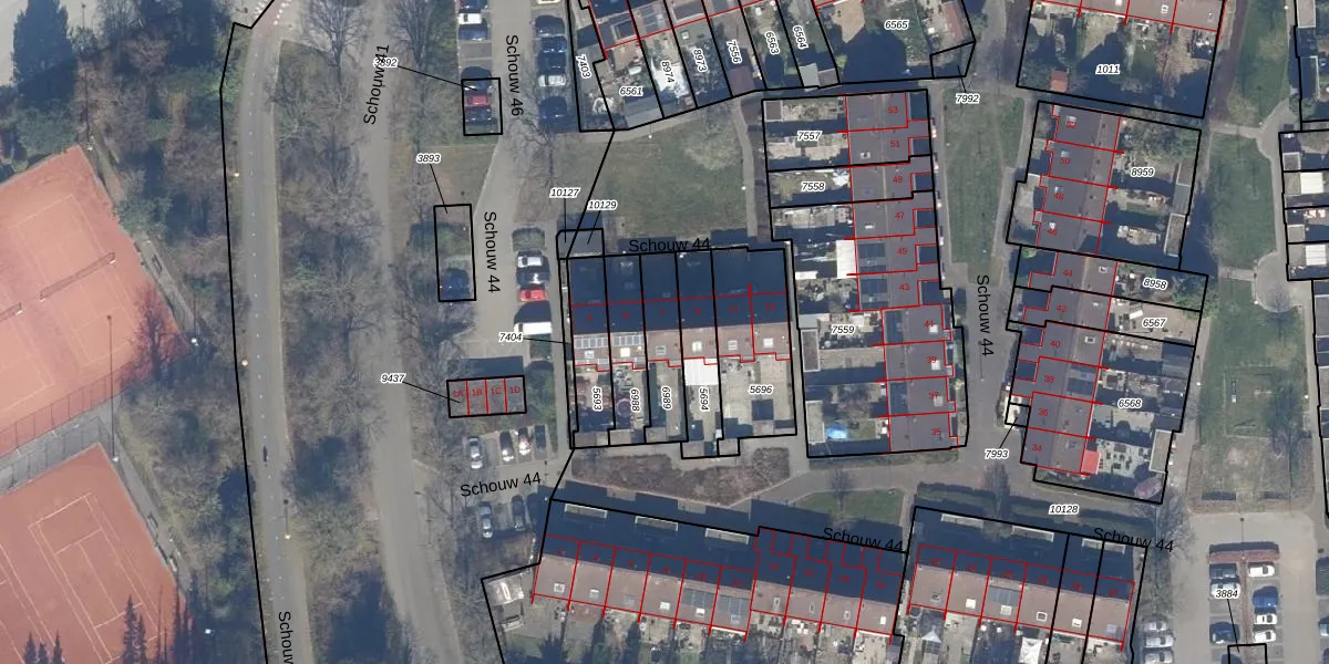 Gebruik de zoekbalk of klik op een perceel voor informatie over de adressen binnen dit perceel.