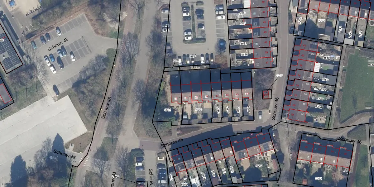 Het perceel waarop Schouw 46 5 staat heeft een oppervlakte van 471 m². Dit is een groot perceel. De perceeloppervlakte wordt geregistreerd door het Kadaster. Gedetailleerde informatie over de maten van dit perceel kunt u vinden in het rapport Kadastrale kaart met maatvoering van Schouw 46 5.