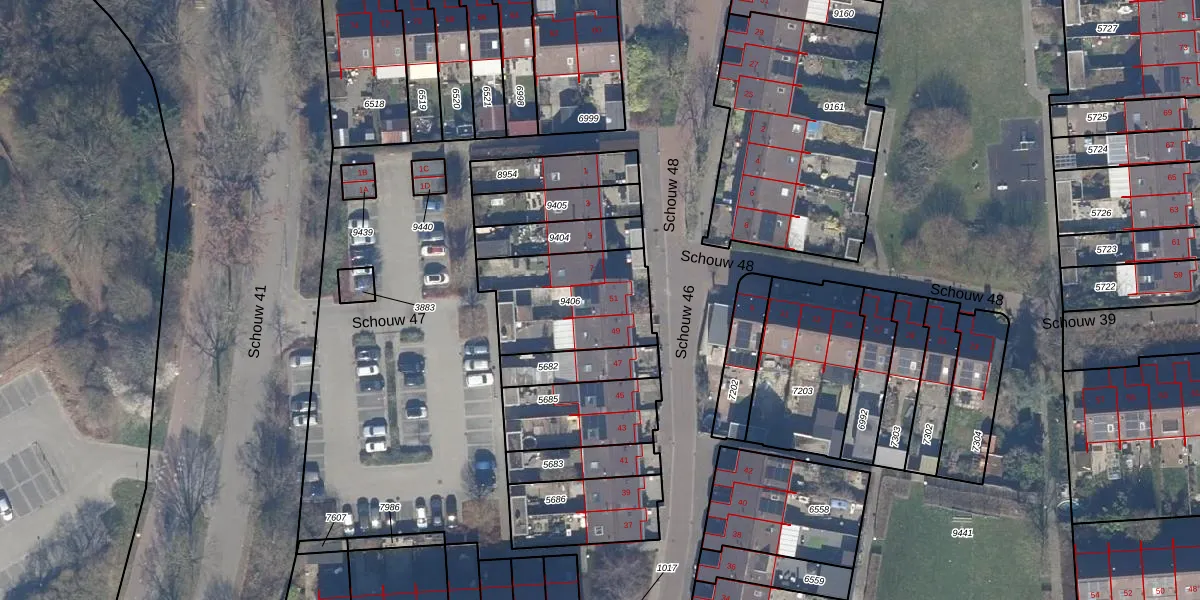 Het perceel waarop Schouw 46 51 staat heeft een oppervlakte van 431 m². Dit is een groot perceel. De perceeloppervlakte wordt geregistreerd door het Kadaster. Gedetailleerde informatie over de maten van dit perceel kunt u vinden in het rapport Kadastrale kaart met maatvoering van Schouw 46 51.