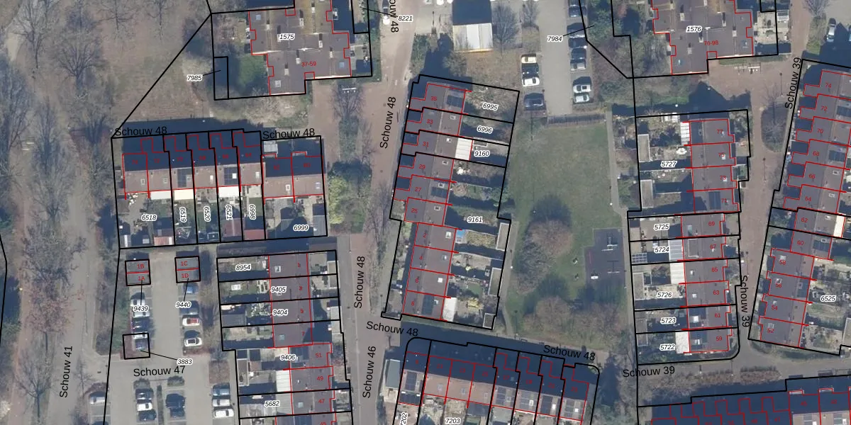 Het perceel waarop Schouw 48 25 staat heeft een oppervlakte van 982 m². Dit is een groot perceel. De perceeloppervlakte wordt geregistreerd door het Kadaster. Gedetailleerde informatie over de maten van dit perceel kunt u vinden in het rapport Kadastrale kaart met maatvoering van Schouw 48 25.