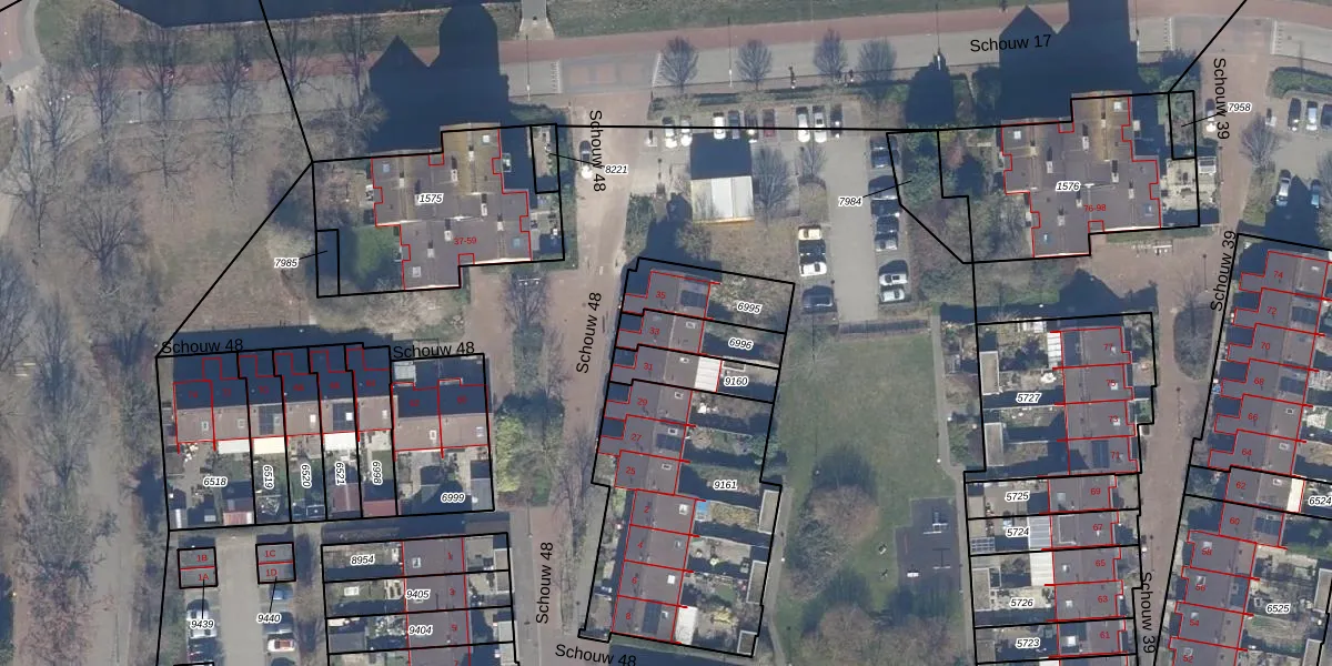 Gebruik de zoekbalk of klik op een perceel voor informatie over de adressen binnen dit perceel.