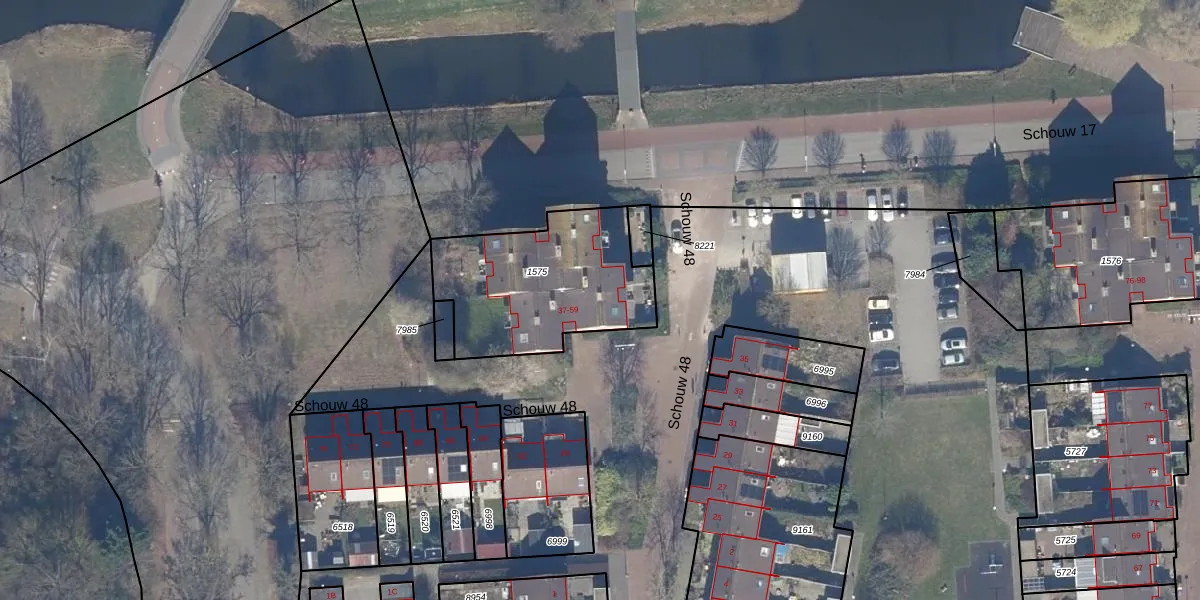 Het perceel waarop Schouw 48 37 staat heeft een oppervlakte van 683 m². Dit is een groot perceel. De perceeloppervlakte wordt geregistreerd door het Kadaster. Gedetailleerde informatie over de maten van dit perceel kunt u vinden in het rapport Kadastrale kaart met maatvoering van Schouw 48 37.