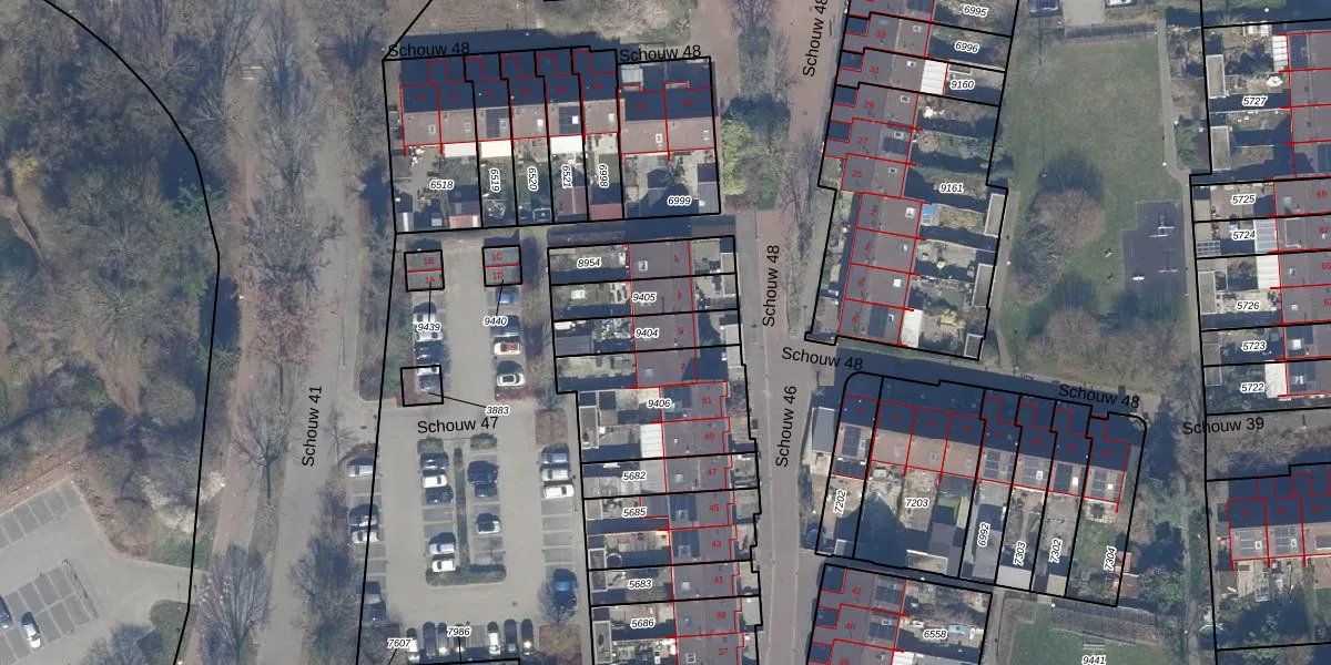 Het perceel waarop Schouw 48 5 staat heeft een oppervlakte van 151 m². Dit is een middelgroot perceel. De perceeloppervlakte wordt geregistreerd door het Kadaster. Gedetailleerde informatie over de maten van dit perceel kunt u vinden in het rapport Kadastrale kaart met maatvoering van Schouw 48 5.