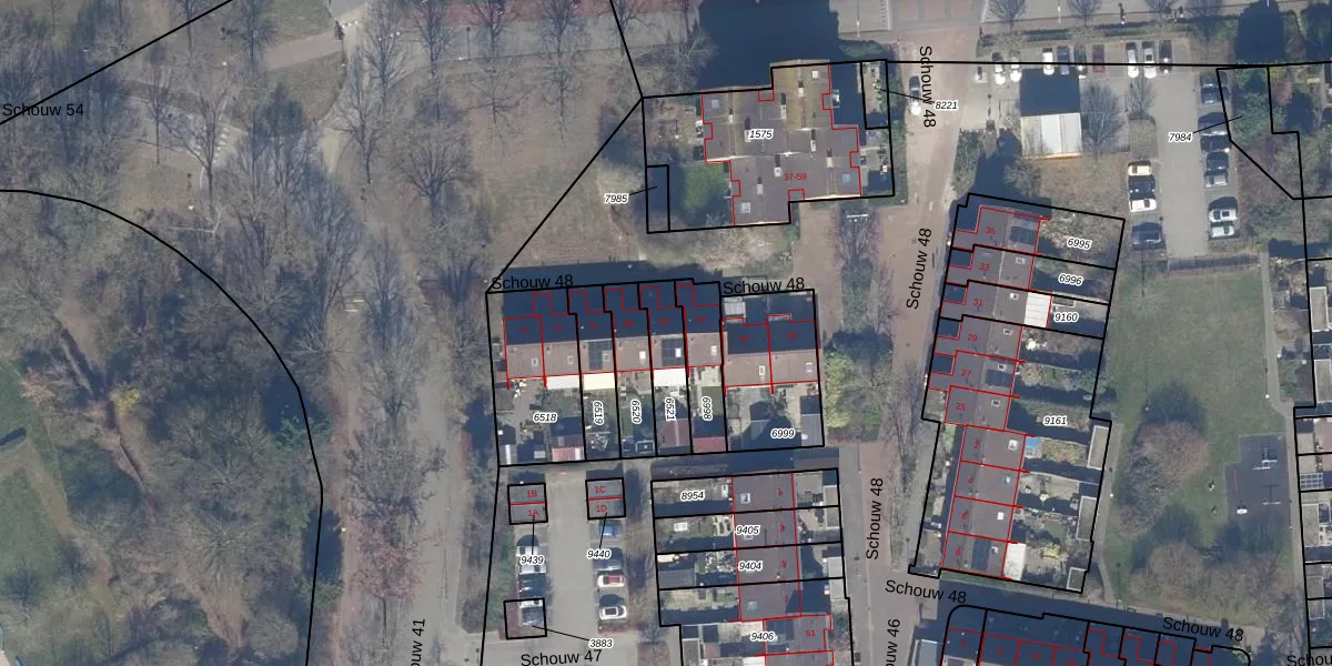 Gebruik de zoekbalk of klik op een perceel voor informatie over de adressen binnen dit perceel.