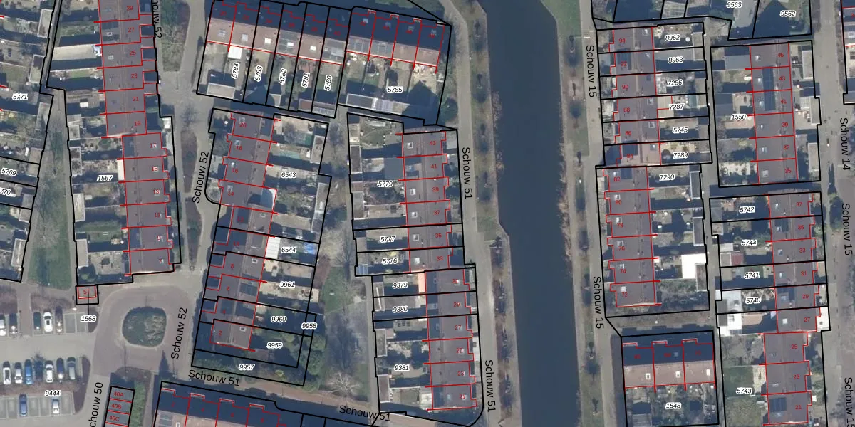 Het perceel waarop Schouw 51 37 staat heeft een oppervlakte van 612 m². Dit is een groot perceel. De perceeloppervlakte wordt geregistreerd door het Kadaster. Gedetailleerde informatie over de maten van dit perceel kunt u vinden in het rapport Kadastrale kaart met maatvoering van Schouw 51 37.