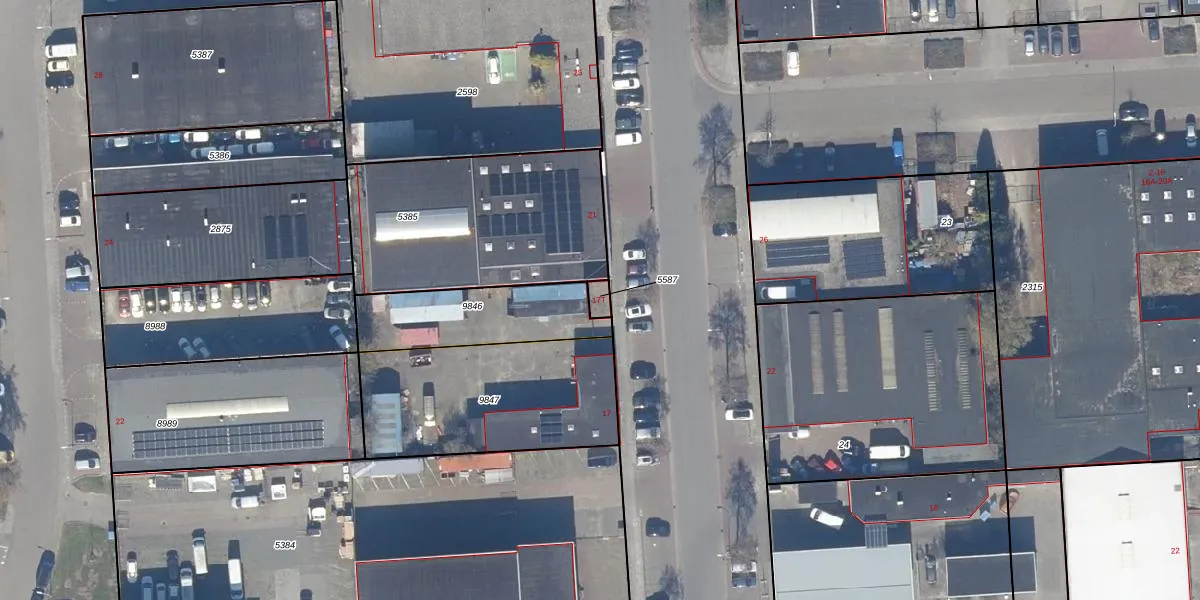 Gebruik de zoekbalk of klik op een perceel voor informatie over de adressen binnen dit perceel.