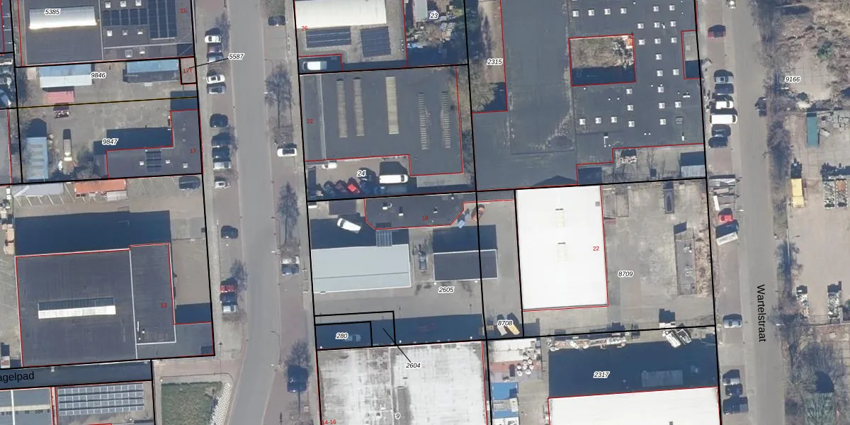 Gebruik de zoekbalk of klik op een perceel voor informatie over de adressen binnen dit perceel.