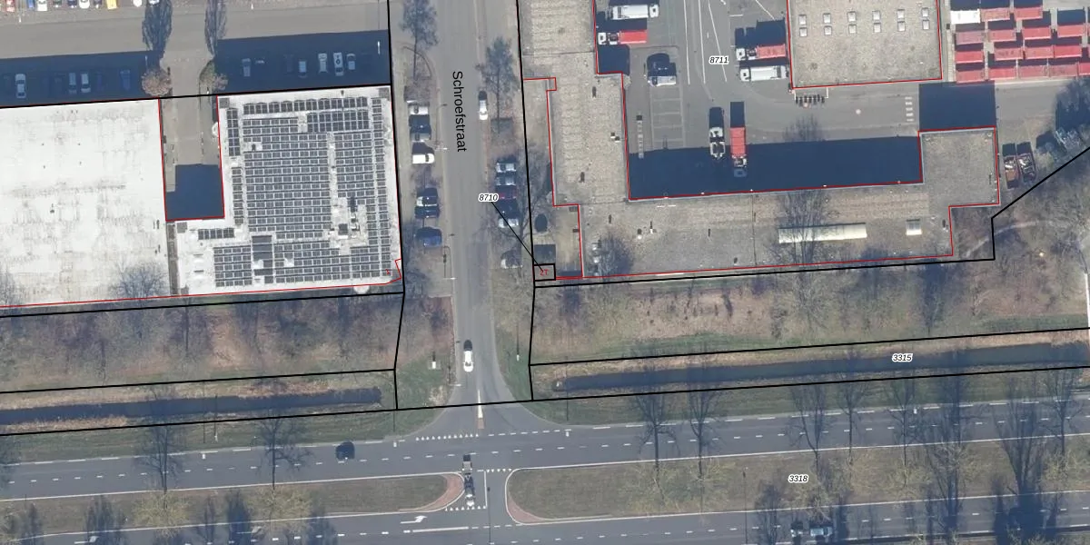 Het perceel waarop Schroefstraat 2-T staat heeft een oppervlakte van 12 m². Dit is een klein perceel. De perceeloppervlakte wordt geregistreerd door het Kadaster. Gedetailleerde informatie over de maten van dit perceel kunt u vinden in het rapport Kadastrale kaart met maatvoering van Schroefstraat 2-T.