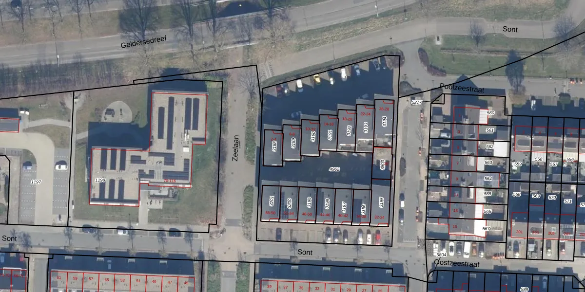Het perceel waarop Sont 8 staat heeft een oppervlakte van 78 m². Dit is een klein perceel. De perceeloppervlakte wordt geregistreerd door het Kadaster. Gedetailleerde informatie over de maten van dit perceel kunt u vinden in het rapport Kadastrale kaart met maatvoering van Sont 8.