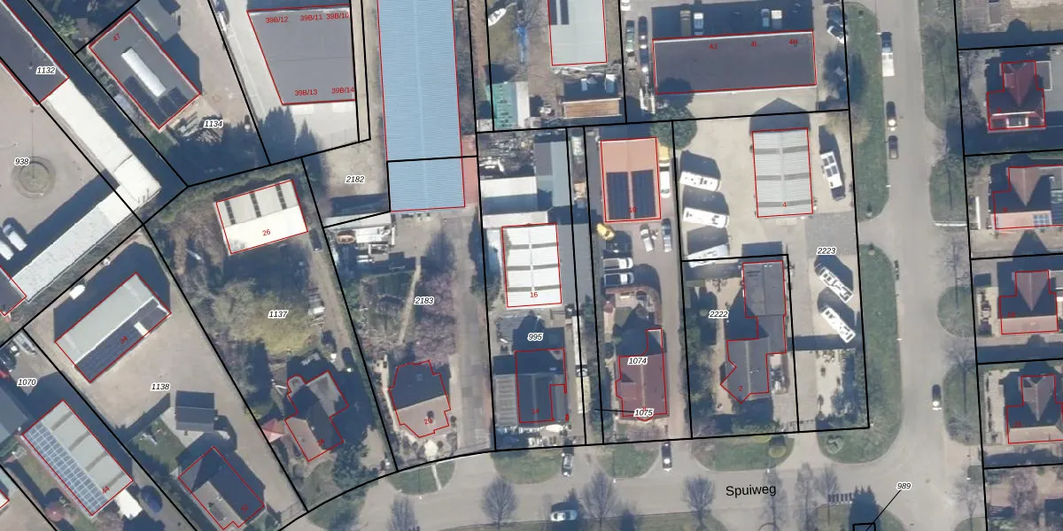 Spuiweg 16 is gelegen op kadastraal perceel LLS00N995. Deze kadastrale aanduiding is uniek en wordt gebruikt door het Kadaster om eigendomsrechten en andere zakelijke rechten vast te leggen. Het perceel maakt onderdeel uit van de kadastrale gemeente Lelystad.